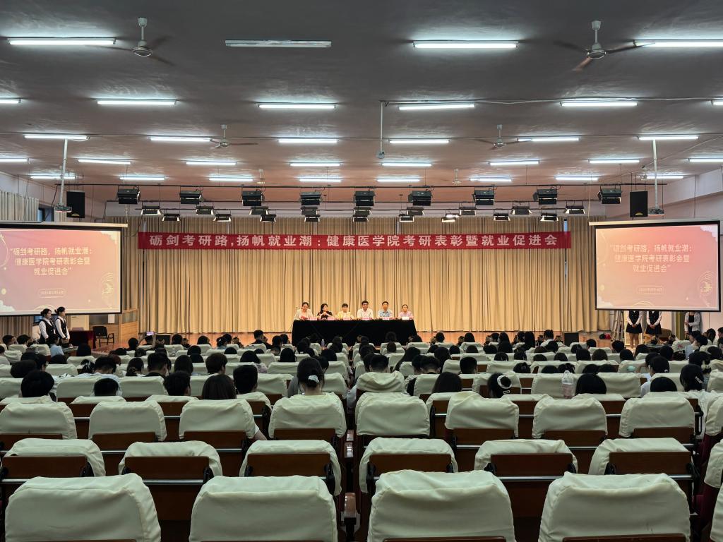 为深化学风建设内涵,充分发挥先进典范的引领效能,切实提升学生考研竞争力与就业核心素养,健康医学院于5月16日晚在求实楼409学术报告厅隆重举行"砺剑考研路,扬帆就业潮"考研表彰会暨就业促进会。学院领导班子成员、骨干教师代表及2022级全体学生共同参与本次活动。